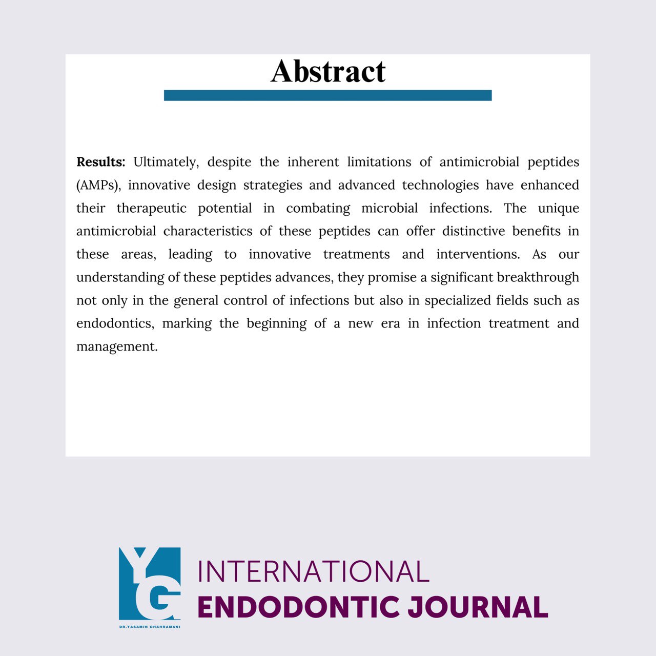 در نهایت، با وجود محدودیتهای ذاتی پپتیدهای ضد میکروبی (AMPs)، استراتژیهای نوآورانه طراحی و فناوریهای پیشرفته، پتانسیل درمانی آنها را در مبارزه با عفونتهای میکروبی افزایش دادهاند. ویژگیهای خاص ضد میکروبی این پپتیدها میتوانند مزایای منحصربهفردی در این زمینهها ارائه دهند و به درمانها و مداخلات نوآورانه منجر شوند. با پیشرفت درک ما از این پپتیدها، آنها نوید تحولی بزرگ نه تنها در کنترل عمومی عفونت، بلکه در حوزههای تخصصی مانند اندودنتیکس را میدهند که نشانهای از آغاز عصری جدید در درمانها و مدیریت عفونت است.