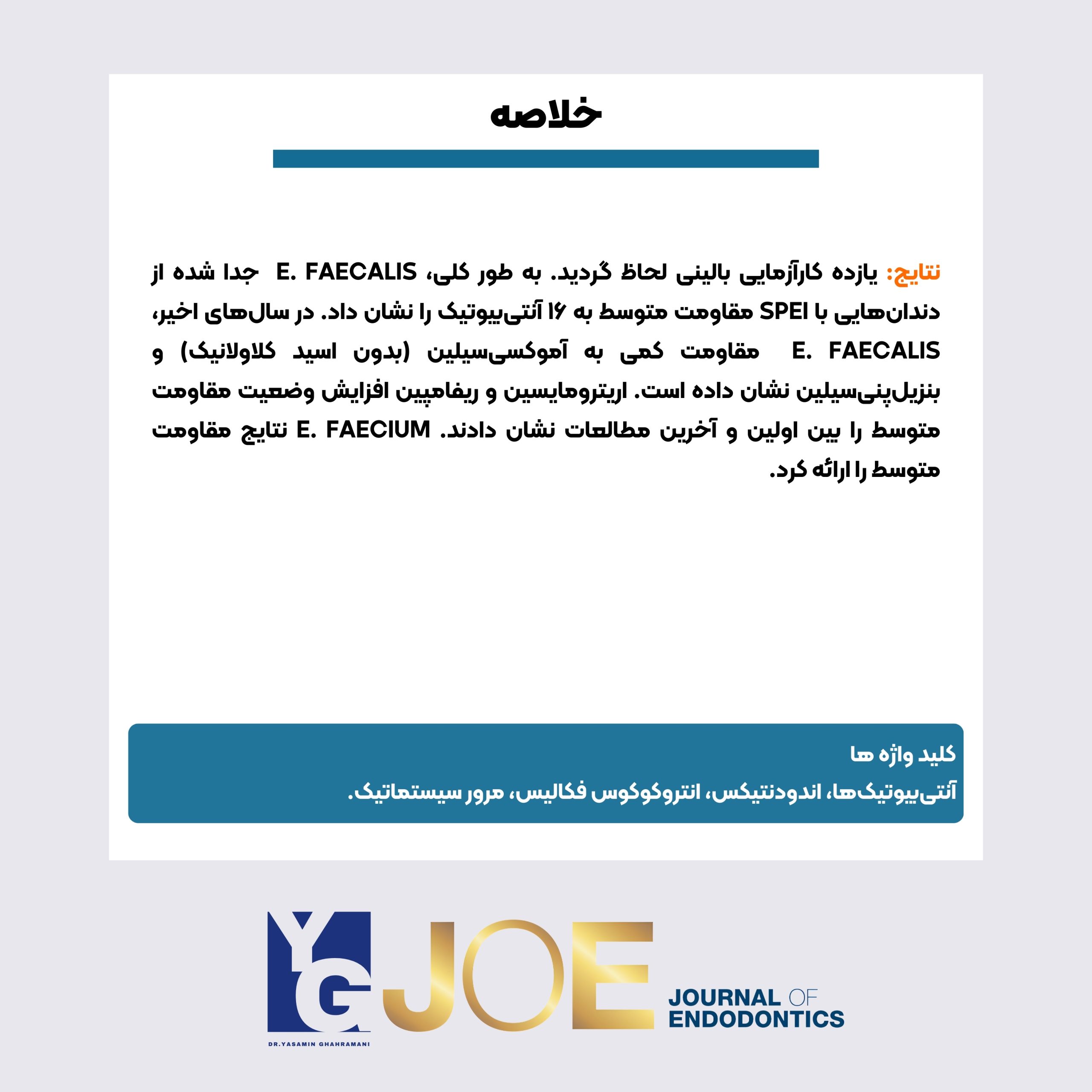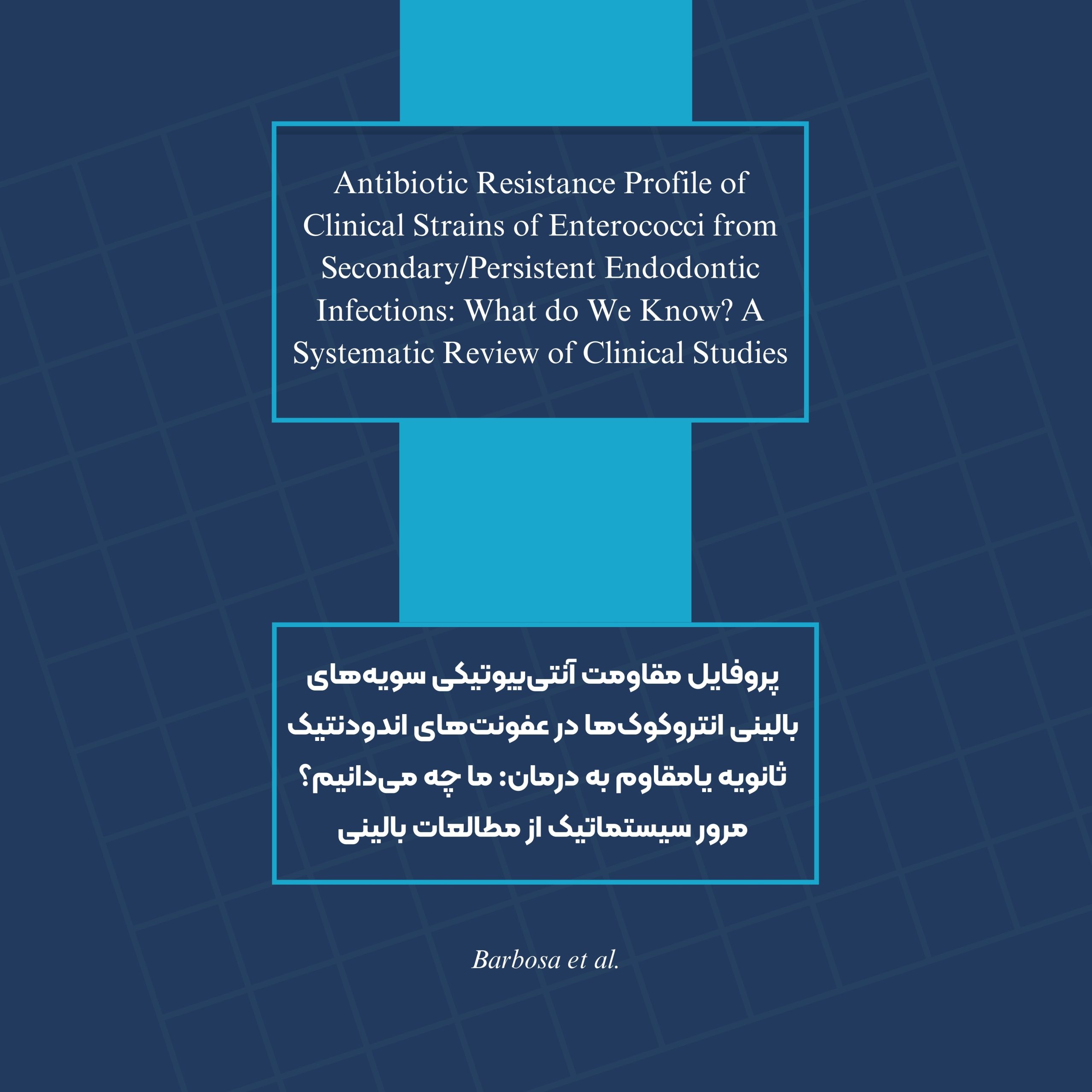 پروفایل مقاومت آنتیبیوتیکی سویههای بالینی انتروکوکها در عفونتهای اندودنتیک ثانویه یا مقاوم به درمان: ما چه میدانیم؟ مرور سیستماتیک از مطالعات بالینی.