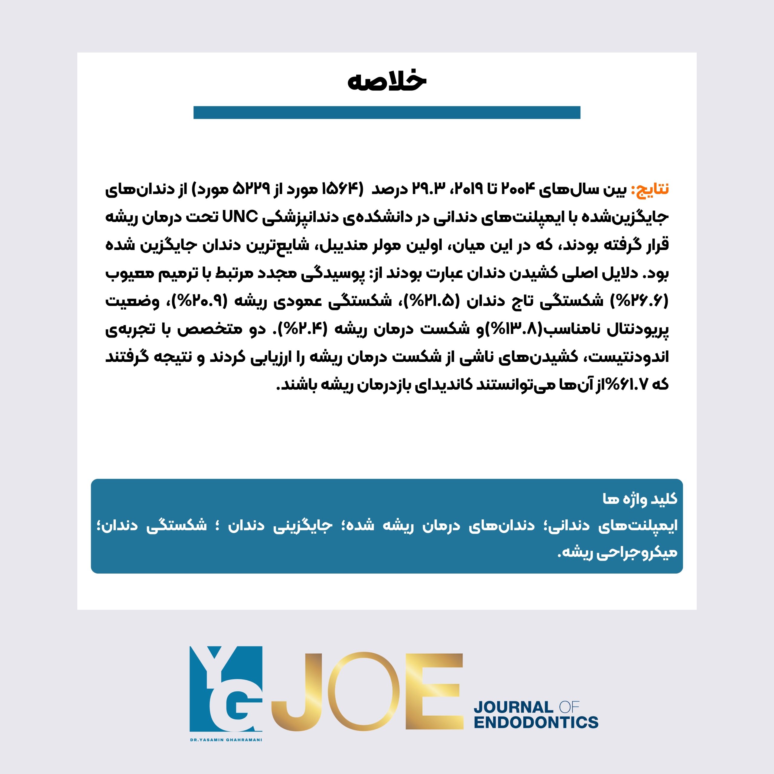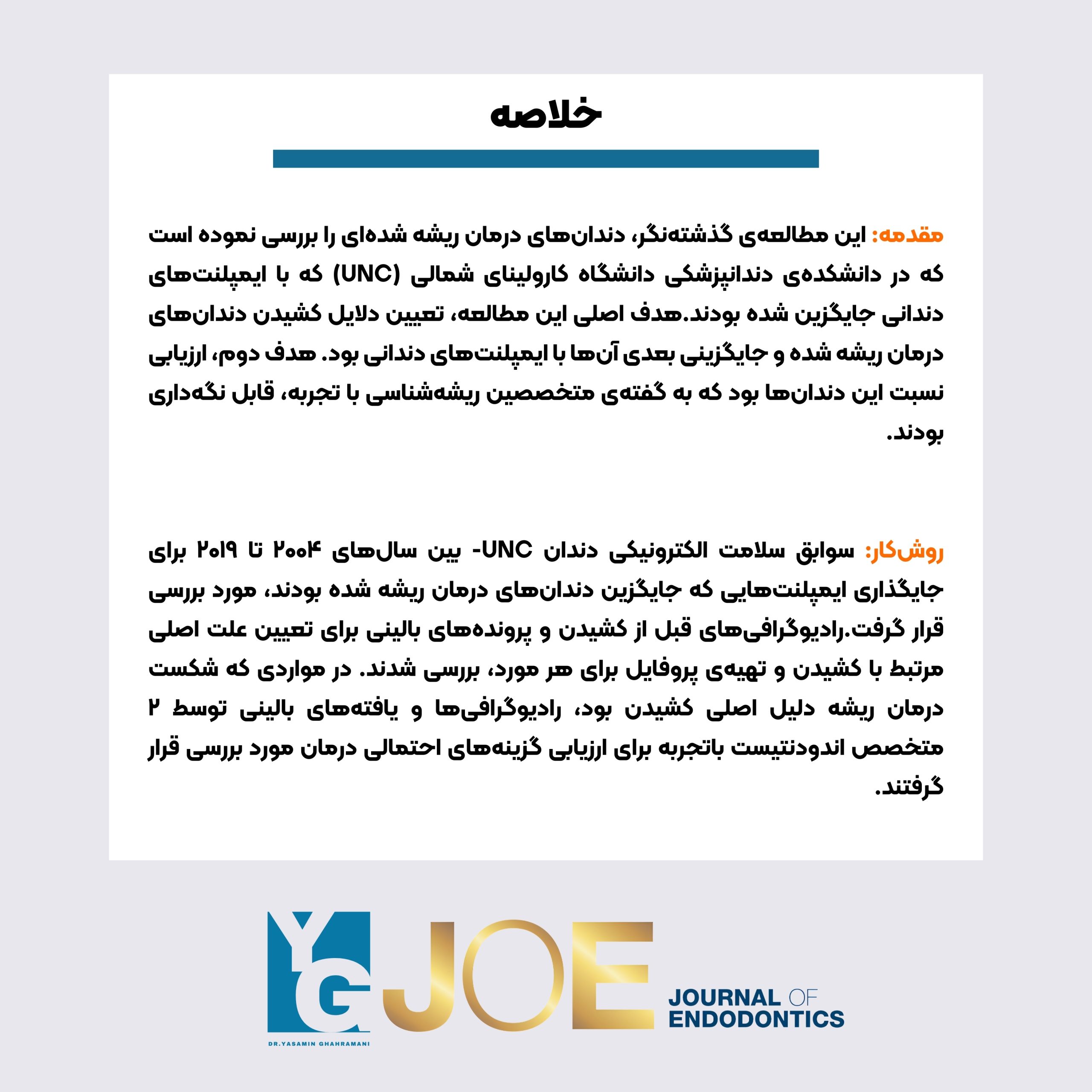ارزیابی گذشتهنگر دندانهای درمان ریشه شده که با ایمپلنتهای دندانی جایگزین شدهاند.